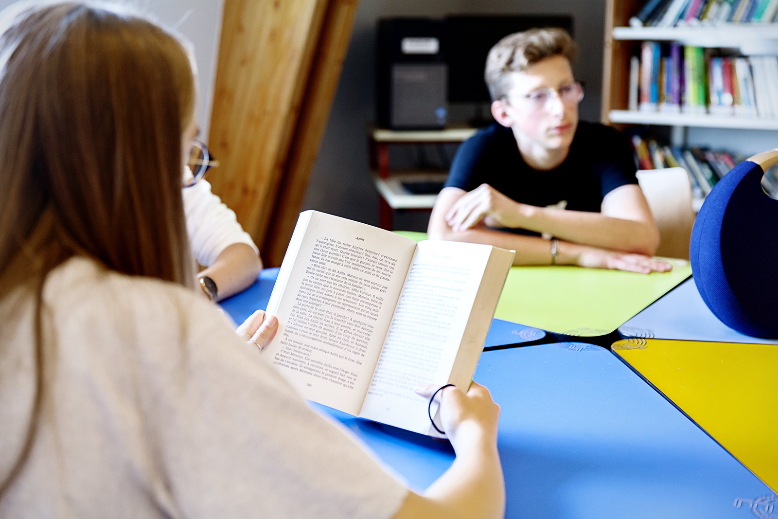 C’est aussi le lieu idéal pour travailler en groupe ou lire tranquillement dans un fauteuil. Ordinateurs et tablettes sont également à la disposition des élèves pour leurs recherches.